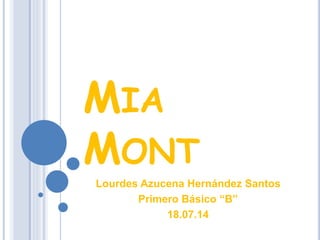 Mia Mont es una cantante y compositora peruana nacida en Lima en 1989. Desde niña estuvo en contacto con la música y a los 8 años tuvo su primera incursión en el canto. Trabajó en su primer disco con Ed Montoya y sus primeros éxitos fueron "Por el", "Buscándote" y "Un día".