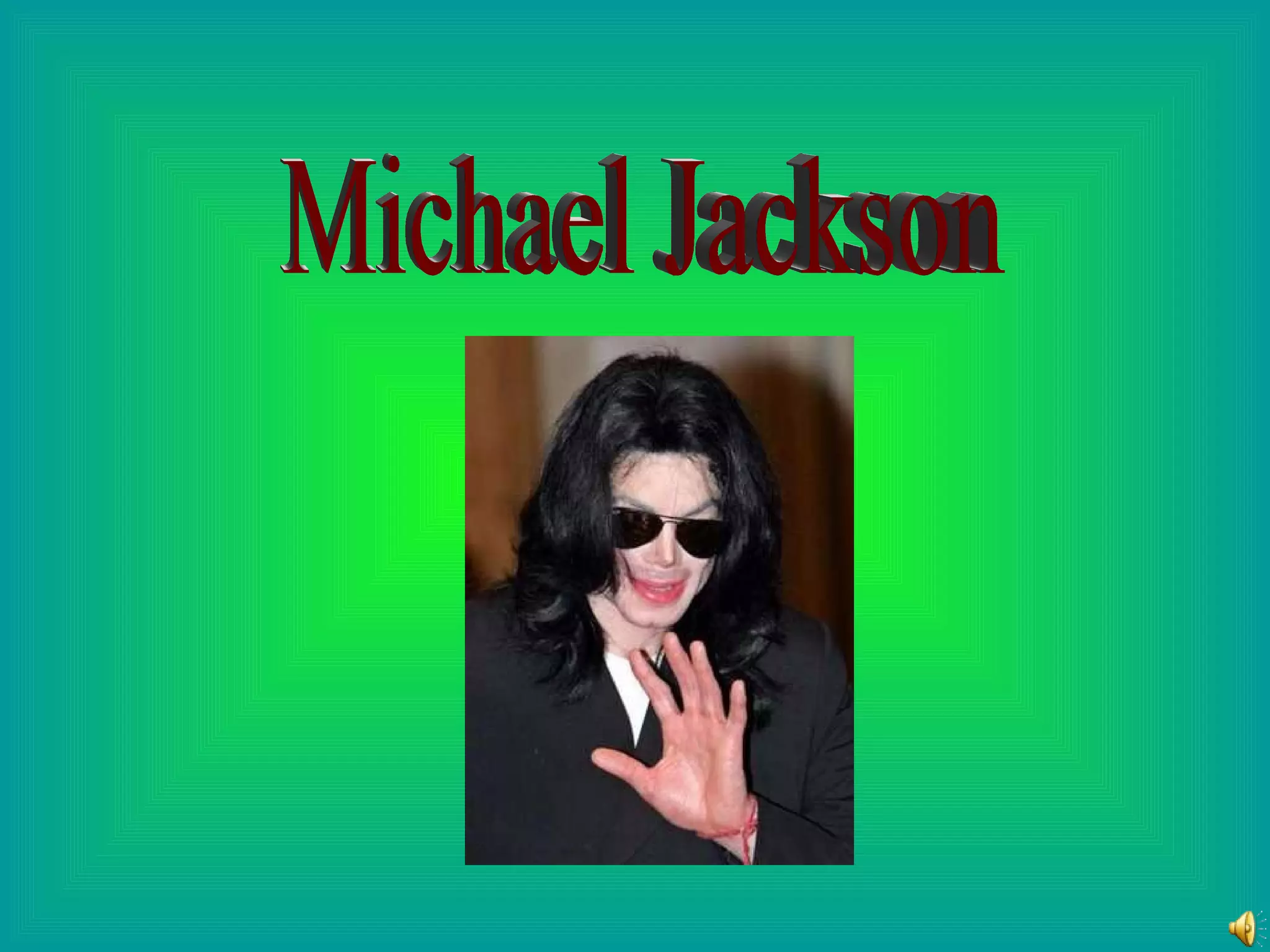 Michael Jackson fue un cantante y bailarín estadounidense conocido como el "Rey del Pop". Algunos de sus discos más exitosos fueron Thriller, Bad y Off the Wall. Nació en 1958 en Indiana y murió en 2009 en California por una sobredosis de morfina. Fue uno de los artistas más exitosos de todos los tiempos con ventas récord de más de 350 millones de discos vendidos en todo el mundo.