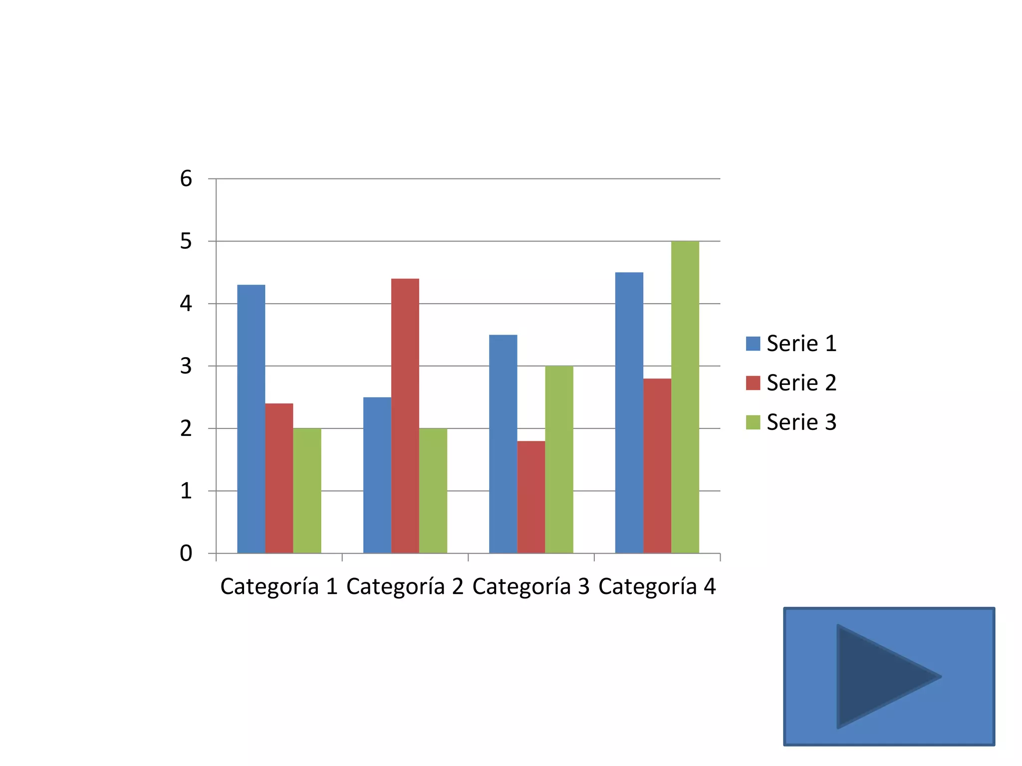 El documento presenta cuatro gráficos de barras que muestran datos de tres series diferentes distribuidos en cuatro categorías. Los gráficos comparan los valores numéricos de cada serie en cada categoría.