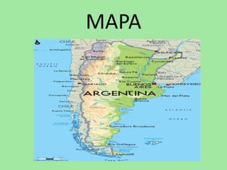 Este documento proporciona información sobre Argentina. Resume que Buenos Aires es la capital y ciudad más grande de Argentina, que es gobernada por Mauricio Macri, y que el idioma predominante es el español.