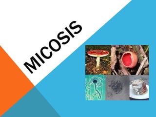 Este documento resume diferentes tipos de hongos y micosis. Menciona hongos superficiales como las tiñas y el pitiriasis versicolor, y hongos más profundos como los micetomas, cromomicosis, coccidioidomicosis, cryptococcus y geotricosis. Describe los agentes causales, síntomas, tratamientos y pronósticos de cada una.