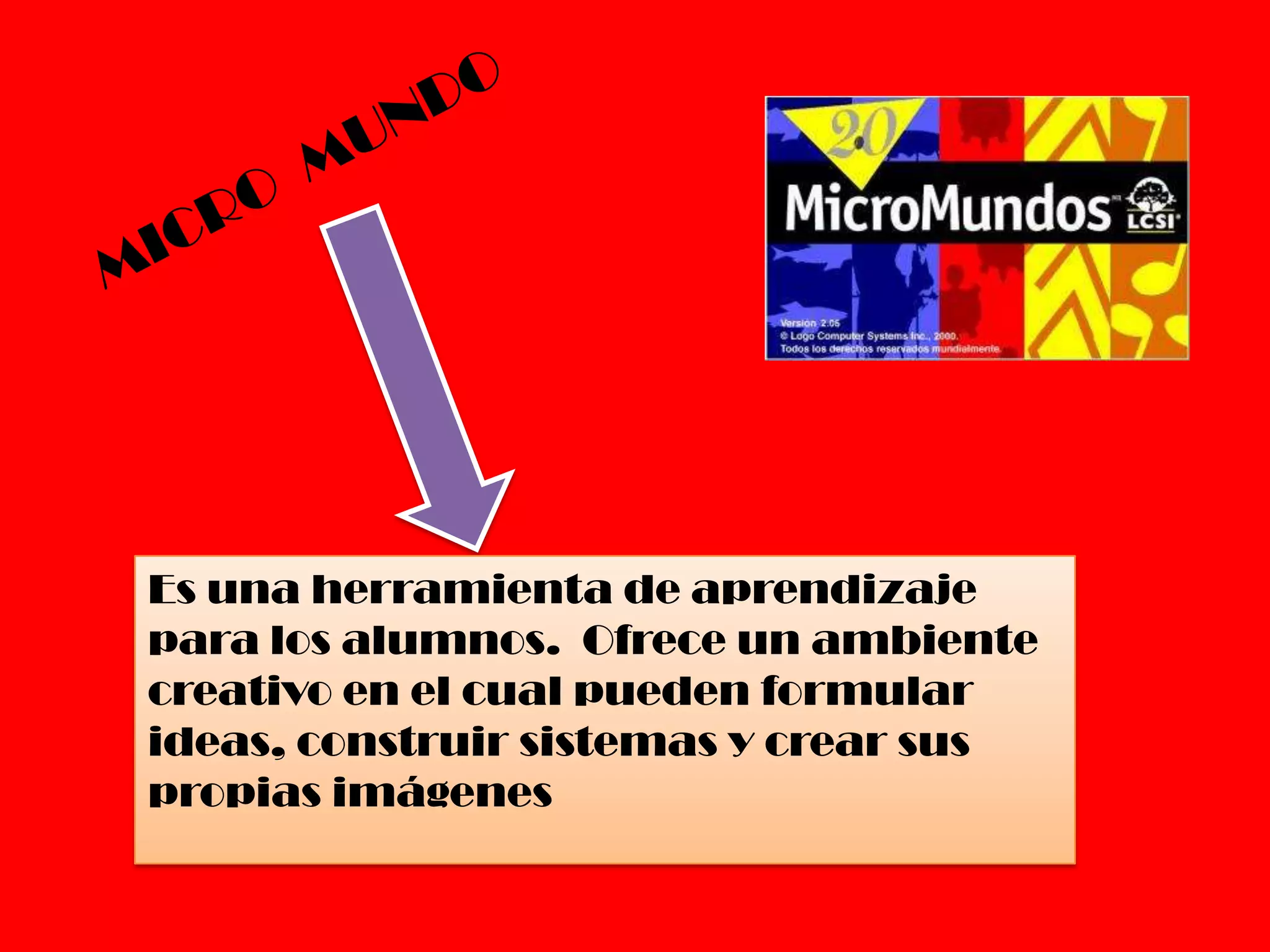 Es una herramienta de aprendizaje que ofrece un ambiente creativo para que los alumnos formule ideas, construyan sistemas y creen sus propias imágenes.
