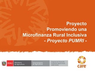 El proyecto PUMRI busca promover la microfinanza rural inclusiva entre 6,050 mujeres beneficiarias del programa Juntos en Perú, enfatizando la alfabetización financiera y el desarrollo de microemprendimientos. Se han movilizado casi 4 millones de soles sin incentivos monetarios, y se reporta un aumento en los ingresos familiares y en el trabajo independiente. Además, 115 lideresas han sido capacitadas para facilitar procesos de educación financiera en sus comunidades.