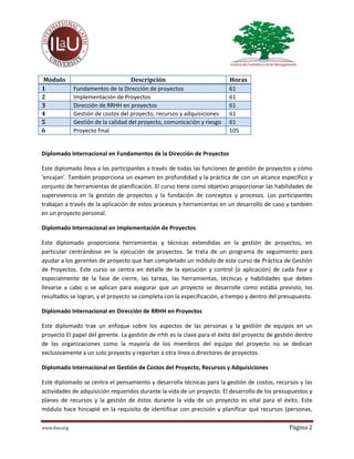 El micro-MBA en Project Management ofrece módulos diseñados para equipar a los profesionales con habilidades clave en la gestión de proyectos. Está dirigido a quienes buscan mejorar sus conocimientos o continuar su desarrollo profesional en este ámbito. Los participantes aprenderán a gestionar proyectos eficientemente, incluyendo aspectos de planificación, recursos humanos, costos, riesgos y calidad.