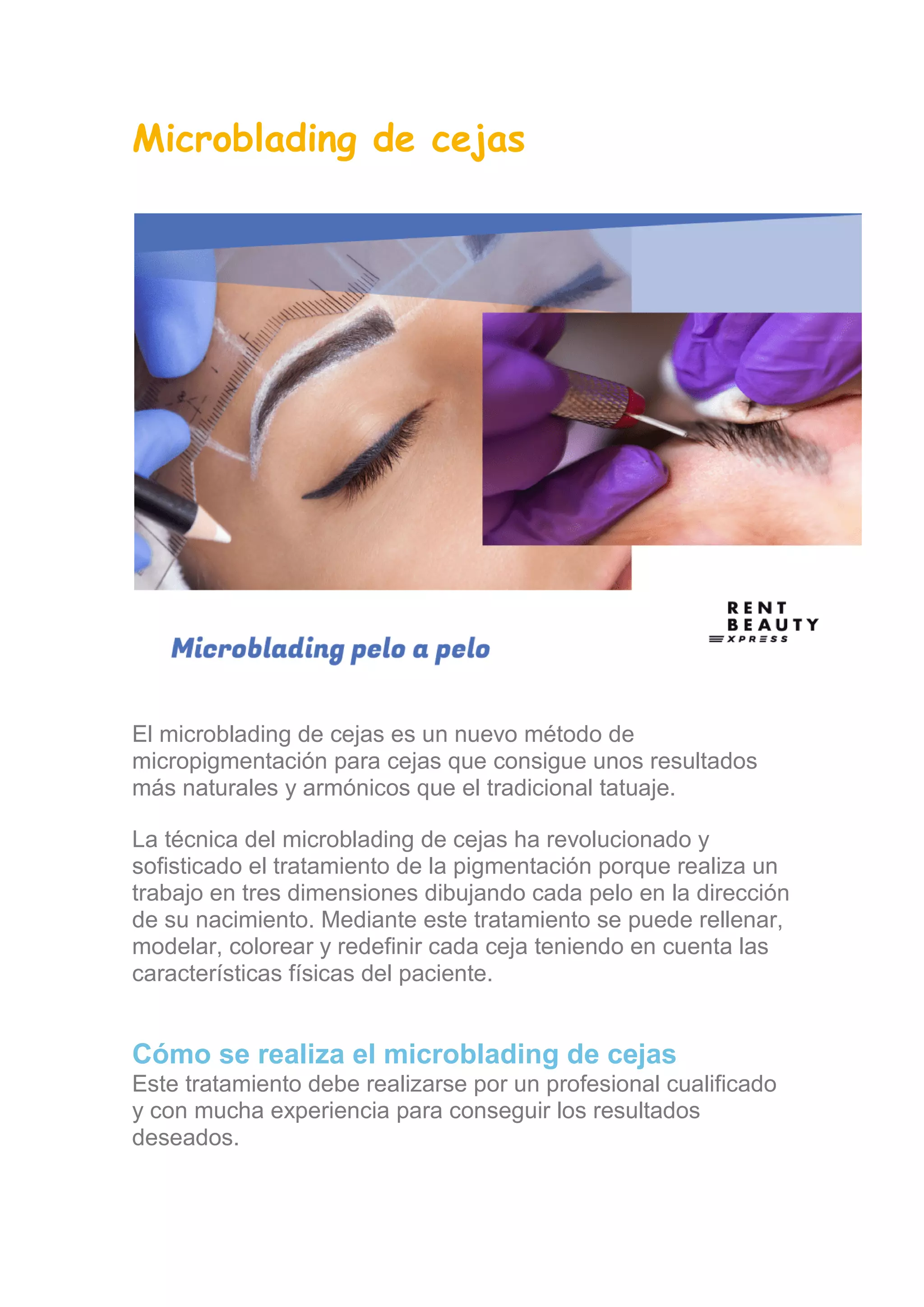 El microblading de cejas es una técnica avanzada de micropigmentación que ofrece resultados naturales al diseñar cada pelo en la dirección de su nacimiento, permitiendo modelar y redefinir las cejas de acuerdo a las características del paciente. El procedimiento debe ser realizado por un profesional cualificado y abarca desde una prueba de alergia hasta un repaso final para asegurar la calidad del resultado. Ideal para aquellos con problemas de alopecia o que deseen mejorar su apariencia, los efectos del microblading suelen durar entre uno y dos años.
