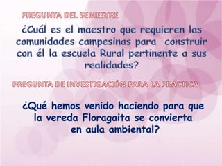 Los niños demuestran un conocimiento sólido sobre su vereda y los esfuerzos para convertirla en un aula ambiental, debido a los proyectos realizados anteriormente. Comparten detalles sobre la ubicación, historia y economía de la vereda, así como proyectos de reforestación, huertas y reciclaje. Manifiestan su compromiso de enseñar a la comunidad sobre la importancia de cuidar el medio ambiente.