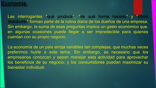 Este documento presenta una introducción a la microeconomía. Explica que la microeconomía estudia el comportamiento de unidades económicas individuales como hogares y empresas, así como su interacción en los mercados. También define la macroeconomía como el estudio del funcionamiento de la economía nacional y global.