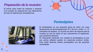 portaobjetos y se fija (mediante calor o agentes químicos) y