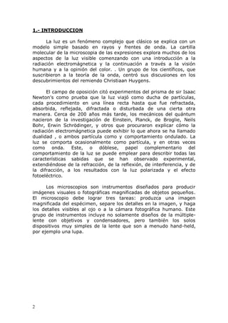 Este documento describe los diferentes tipos de microscopios, incluyendo microscopios ópticos y electrónicos. Explica las partes clave de un microscopio como el objetivo, ocular y condensador. También detalla los diferentes tipos de microscopios ópticos como de campo claro, oscuro y fluorescencia, así como los microscopios electrónicos como el de transmisión electrónica y barrido.