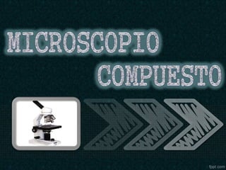 El documento describe las partes principales de un microscopio compuesto, incluyendo el tubo, objetivo, ocular, platina, tornillos macrométrico y micrométrico. Explica que el microscopio proporciona una doble amplificación al proyectar y ampliar la imagen del objeto a través del objetivo y ocular. También define la fórmula para calcular el aumento en función de la longitud del tubo y las distancias focales del objetivo y ocular.