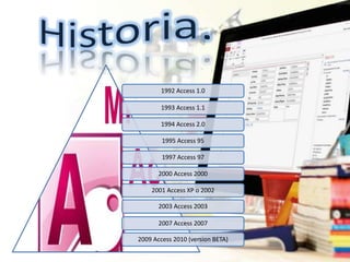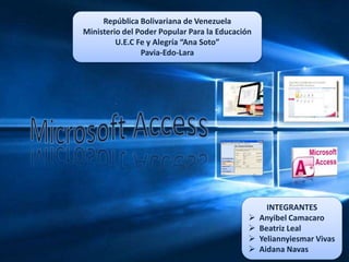 El documento presenta una descripción de Microsoft Access, destacando su capacidad para administrar bases de datos, buscar y organizar información de manera gráfica y eficiente. Resalta sus ventajas, como la facilidad de uso y la creación de informes, así como sus desventajas, incluyendo limitaciones de compatibilidad y tamaño. En general, Access es una herramienta útil para la gestión de datos, aunque no es adecuada para proyectos grandes.