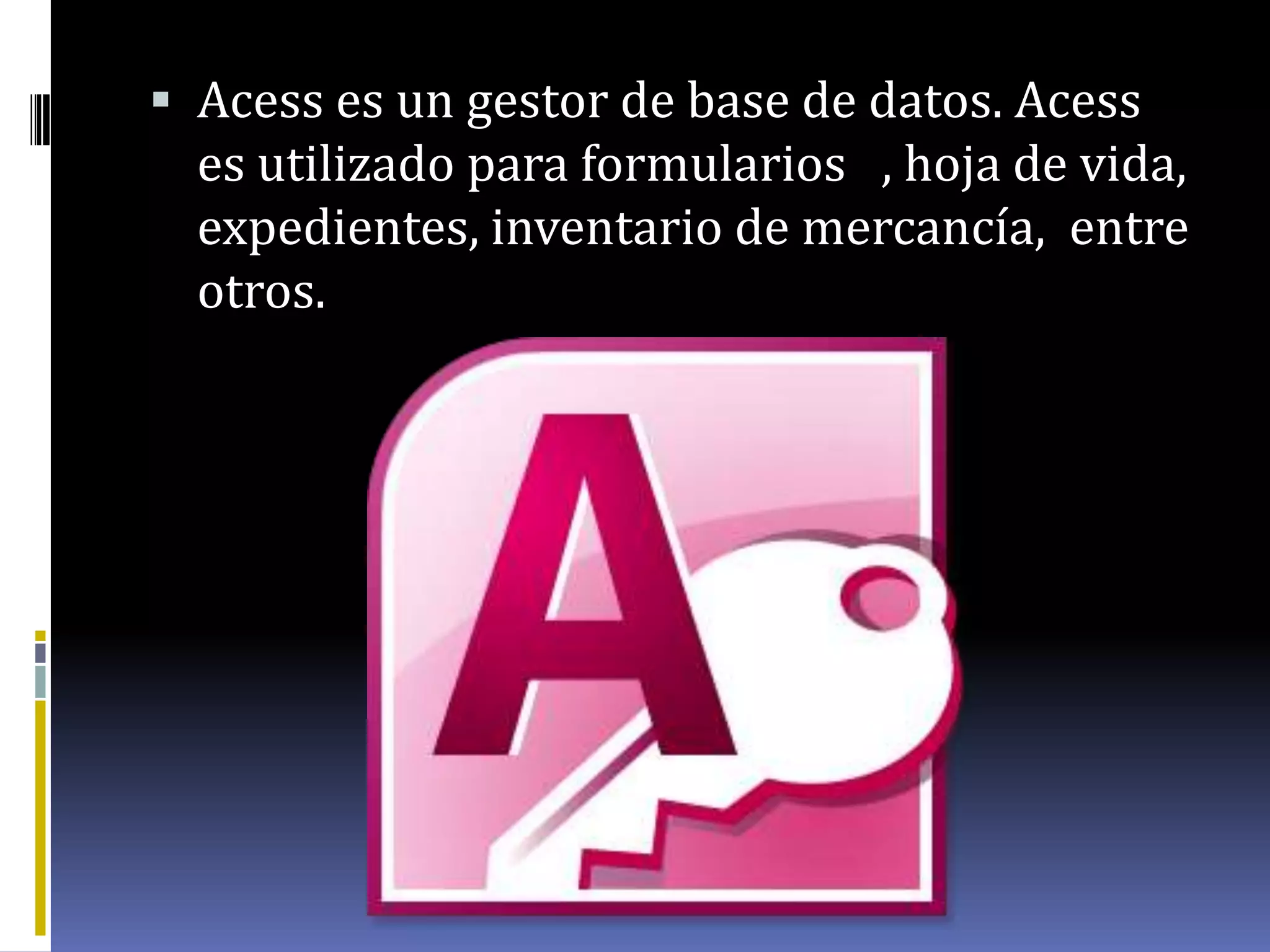 Microsoft Access es un gestor de base de datos que viene incluido en el paquete de Microsoft y es fácil de usar. Access permite crear formularios, hojas de cálculo y expedientes para organizar información de inventario u otros datos de empresas de manera estructurada en tablas con campos y registros. Las bases de datos de Access ayudan a las compañías a almacenar y acceder a información de forma más eficiente que usar carpetas y documentos físicos.