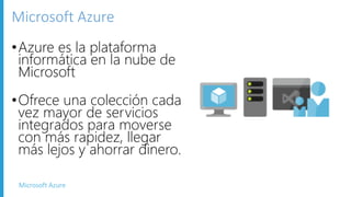 Microsoft Azure es la plataforma de nube de Microsoft que ofrece una amplia gama de servicios integrados de computación, almacenamiento, bases de datos, redes, análisis de datos e inteligencia artificial. Los clientes pagan por el uso de estos servicios según un modelo de pago por uso. Microsoft Azure admite las mismas tecnologías que millones de desarrolladores y profesionales de TI ya usan.