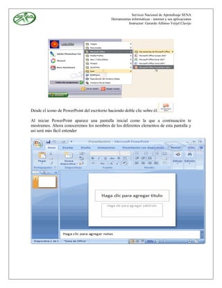 Este documento proporciona una guía detallada sobre cómo utilizar Microsoft PowerPoint 2007. Explica las características principales de PowerPoint y cómo crear, editar y administrar presentaciones. También muestra cómo insertar y modificar diapositivas, así como guardar y abrir presentaciones en diferentes formatos. El objetivo es enseñar a los estudiantes a aprovechar todas las herramientas y funciones de PowerPoint.