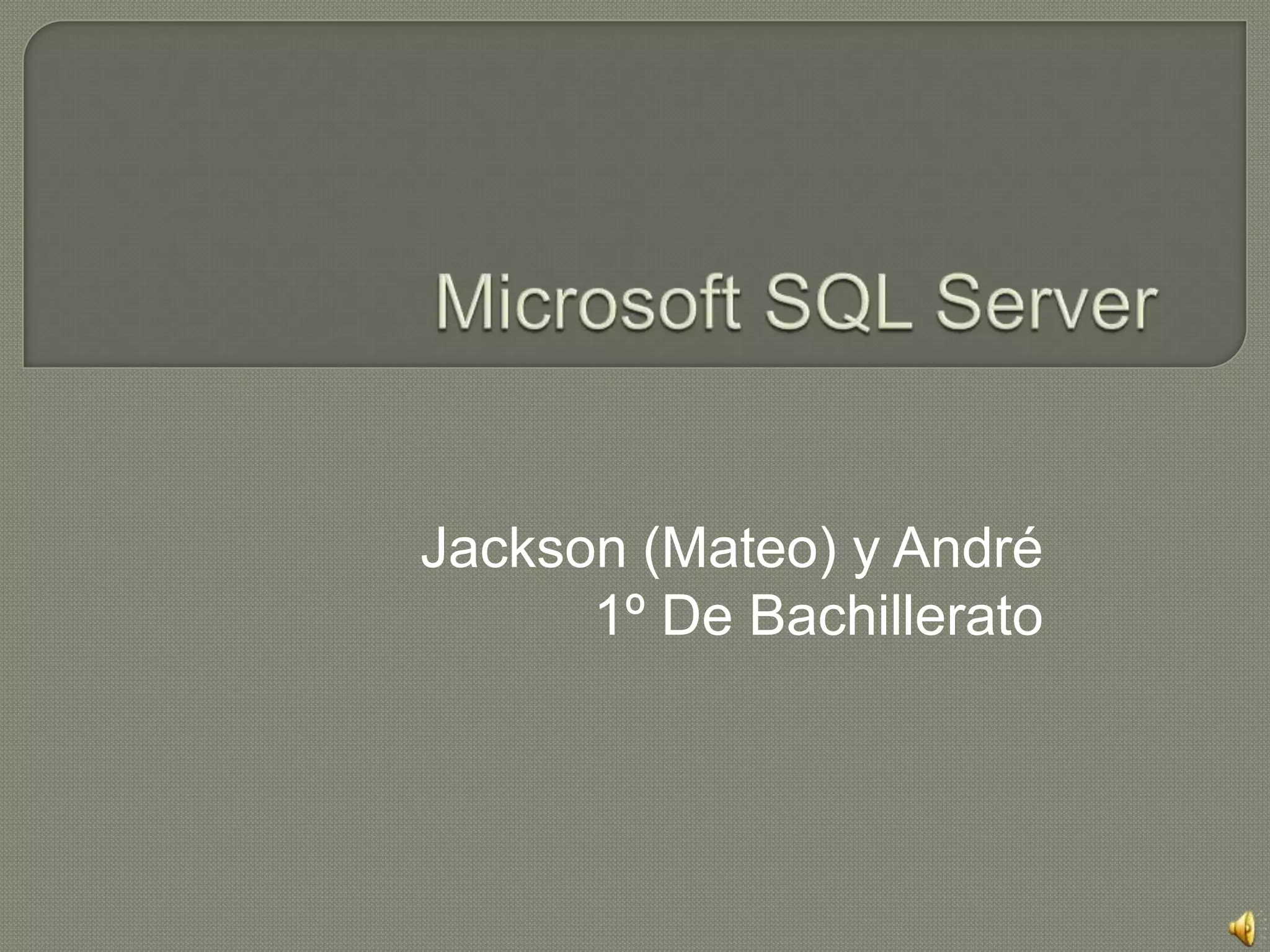 Microsoft SQL Server es un sistema de gestión de bases de datos relacional producido por Microsoft. Permite el almacenamiento y recuperación segura de datos mediante un modelo cliente-servidor, y proporciona características como transacciones, escalabilidad, procedimientos almacenados y seguridad. Se compone de servidores que almacenan los datos e interfaz gráfica para la administración, y clientes que se conectan a través de redes para acceder a la información.