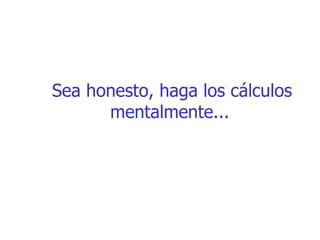 Este documento presenta una serie de ejercicios mentales breves, incluyendo sumas numéricas y contar letras, para evaluar la capacidad de cálculo mental y procesamiento rápido. También incluye un ejercicio de reflexión para ver si las personas piensan de manera similar o diferente al pedirles que imaginen una herramienta y un color.