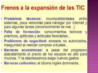La ciudad inteligente se refiere a un conjunto de servicios, redes, software y dispositivos que mejoran la calidad de vida de las personas y se integran en un sistema de información interconectado. El documento describe el progresivo aumento de la tecnología portátil, la difusión de pantallas planas, el uso de redes inalámbricas e Internet de banda ancha, así como la multiplicación de actividades como la banca, la medicina y el ocio que se realizarán en el ciberespacio.
