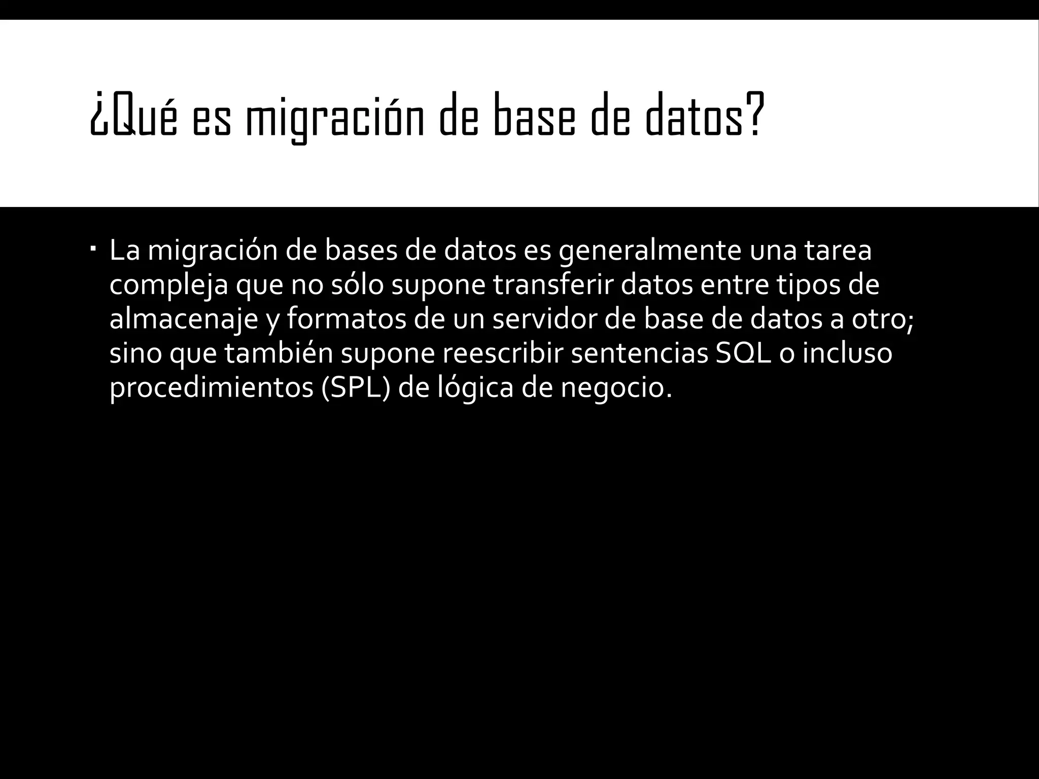 La migración de bases de datos implica transferir datos y reescribir código entre sistemas de bases de datos. Es un proceso complejo que requiere considerar diferencias en el almacenamiento de datos como fechas y números. Para migrar de Access a MySQL, se puede usar un controlador ODBC, mientras que para otras bases de datos se pueden exportar datos a archivos de texto e importarlos a MySQL. También es necesario transformar formatos de datos como booleanos y fechas para ajustarse al nuevo sistema.