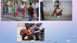 El documento aborda la complejidad de la migración en México, destacando causas económicas, familiares y políticas que impulsan dicho fenómeno tanto en el ámbito interno como en el internacional. Se examinan las consecuencias de la migración para los lugares de origen y destino, incluyendo tanto efectos positivos como negativos, y se menciona específicamente la migración infantil y la emigración mexicana hacia Estados Unidos y otros países. Finalmente, se detalla el movimiento interno dentro de México y la situación de migrantes indígenas en la Ciudad de México.
