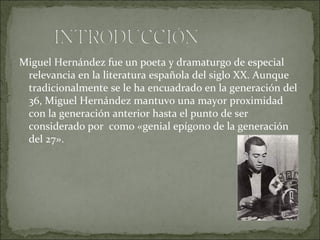Este poema de Miguel Hernández describe la dura situación que su familia enfrenta durante la Guerra Civil Española, dividido en dos partes: la primera donde se dirige a su esposa explicando su impotencia para ayudarlos, y la segunda donde se dirige a su hijo transmitiéndole la importancia de vivir y reír a pesar de los tiempos difíciles. El poema utiliza recursos literarios como metáforas, hipérboles y personificaciones para transmitir este mensaje.