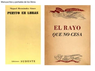 Este poema está compuesto por tres oraciones que resumen el documento. El poema habla sobre la muerte de un poeta y amigo llamado Ramón Sijé. El autor expresa su profundo dolor por la pérdida y desea encontrar y besar los restos de su amigo. También desea que el espíritu de su amigo regrese a su huerto y continúe con su trabajo poético.