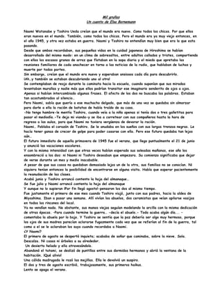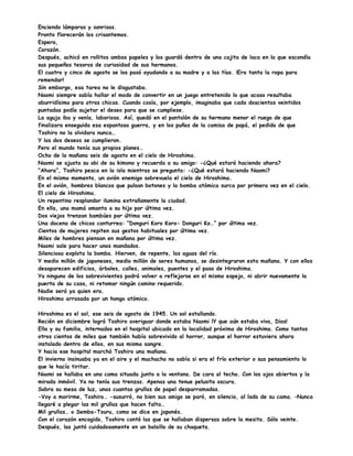 Naomi y Toshiro son dos niños que se enamoran en la ciudad japonesa de Hiroshima en 1945, en plena Segunda Guerra Mundial. A pesar de vivir en un contexto de escasez y miedo, los niños descubren su amor el uno por el otro. Un día, Toshiro se va de vacaciones y cuando regresa se entera que Naomi está enferma en el hospital. Al visitarla, Naomi le dice que no sobrevivirá a menos que Toshiro le traiga 1000 grullas de origami, creyendo que esto le dará bu