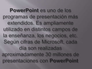 PowerPoint permite crear presentaciones, diapositivas y animaciones. PowerPoint Online tiene atajos de teclado diferentes a las versiones de escritorio. Los virus pueden dañar computadoras al reemplazar archivos ejecutables con código malicioso. Existen diferentes tipos de virus como gusanos, troyanos, bombas de tiempo y virus de macro.