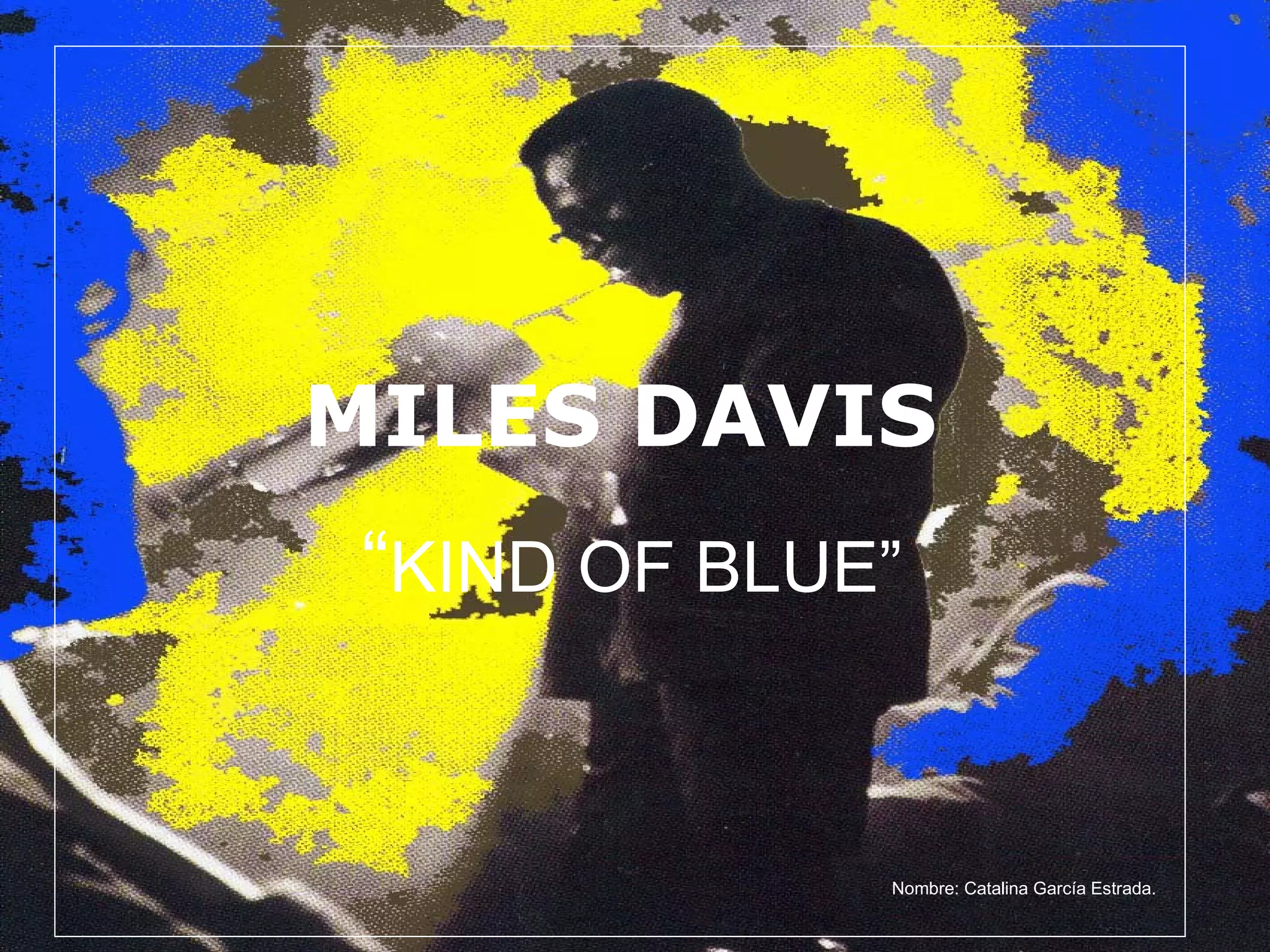 El documento describe el álbum "Kind of Blue" de Miles Davis, grabado en 1959, que es considerado el disco de jazz más vendido de todos los tiempos. Detalla las seis canciones que componen el álbum, incluyendo "So What" e "Freddie Freeloader", e identifica a los músicos que participaron en cada pista, como John Coltrane, Wynton Kelly y Bill Evans.