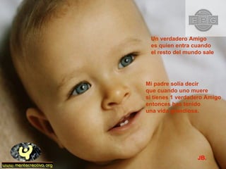 El documento contiene varias citas y reflexiones sobre la amistad. Algunas ideas clave son: la importancia de los amigos verdaderos, especialmente en tiempos difíciles; que los amigos escuchan no solo lo que dices sino también lo que no dices; y que aunque cada uno tome caminos distintos en la vida, llevamos con nosotros parte de nuestros amigos.