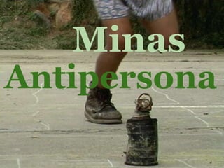 Este documento resume las minas antipersona, incluyendo qué son, sus tipos principales, los países que las producen y los afectados, su relación con las éticas y los derechos humanos, y los esfuerzos para prohibirlas. Las minas antipersona violan los derechos humanos a la vida y la seguridad, y su uso no puede justificarse éticamente a pesar de los beneficios económicos para los países productores. Varios tratados internacionales, como la Convención de Ottawa de 1997, buscan prohibir las minas para proteger a los