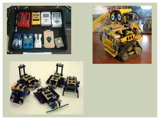 Este documento describe la robótica educativa y su historia. Define la robótica educativa como el conjunto de actividades pedagógicas que apoyan el desarrollo de competencias a través de la concepción, creación y funcionamiento de robots. Explica que tiene como objetivo adaptar a los estudiantes a los procesos productivos actuales y desarrollar habilidades motoras y cognitivas a través de la creación de robots. Además, resume que Lego Mindstorms ha sido una importante herramienta de robótica educativa desde su lanzamiento en 1998, al permit