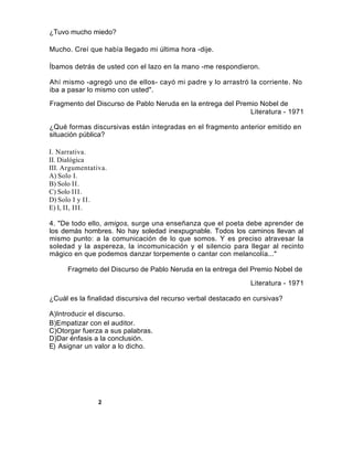 El fragmento corresponde a la introducción o exordio de un discurso emitido en una situación pública, como la entrega de un premio literario. Pablo Neruda comienza su discurso describiendo un largo viaje a través de regiones lejanas de su país, Chile, comparando su geografía con la de Suecia para enfatizar las grandes distancias recorridas.