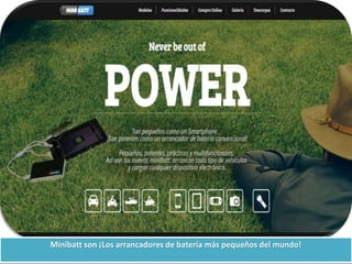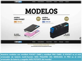 Minibatt presenta los arrancadores de batería más pequeños y potentes del mundo, disponibles en dos modelos: minibatt pocket cmb2 y minibatt pro cmb5. Estos dispositivos arrancan motores de 12V y cargan dispositivos electrónicos, además de contar con una linterna LED. Su diseño compacto los hace prácticos y multifuncionales, ideales para cualquier tipo de vehículo o uso personal.