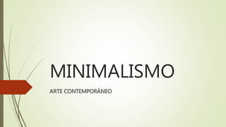 Este documento describe el movimiento artístico minimalista, que surgió en Estados Unidos en la década de 1960. Se caracteriza por la extrema simplicidad de formas, uso de líneas puras, colores neutros y espacios despejados. Algunos artistas minimalistas destacados son Donald Judd, Carl André y Dan Flavin, cuyas obras utilizan pocos elementos geométricos de manera ordenada. El minimalismo busca la sobriedad sin ornamentación.