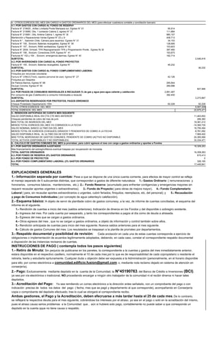 El documento presenta los gastos comunes de julio de 2011 para una comunidad de departamentos. Reporta los saldos de cuentas del mes anterior, los ingresos y egresos del mes actual desglosados por concepto, y calcula los gastos comunes a prorratear para cubrir los egresos del mes siguiente.