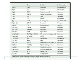 Este documento presenta dos casos clínicos de miocardiopatía dilatada. El primer caso es de una mujer de 73 años con antecedentes de hipertensión y diabetes que consulta por disnea progresiva y edema en las piernas. El segundo caso es de un adolescente de 15 años con antecedentes de trastorno del espectro autista que consulta por palpitaciones y dificultad respiratoria. Ambos pacientes presentan hallazgos compatibles con miocardiopatía dilatada en el examen físico y ecocardiograma. El documento también revisa aspectos generales