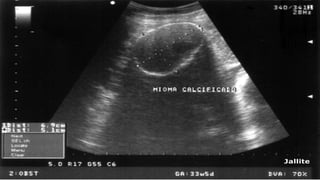 Este documento resume la anatomía, etiología, síntomas y tratamientos de los miomas uterinos (leiomiomas). Los miomas son tumores benignos del útero que dependen de los estrógenos y son más comunes en mujeres durante los años reproductivos. Pueden causar sangrado excesivo, dolor pélvico y presión abdominal. El diagnóstico se realiza clínicamente y con ultrasonido. Los tratamientos incluyen observación, medicamentos para reducir los estrógenos, miomectomía quirúrgica y embolización de arter