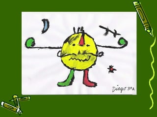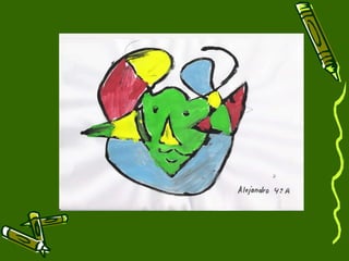 El documento describe una actividad donde los niños observan y crean dibujos inspirados en el estilo de Miró. Utilizan elementos simples como estrellas y círculos en su diseño. Esta actividad se enmarca en la conmemoración del cuarto centenario de la publicación del Quijote.
