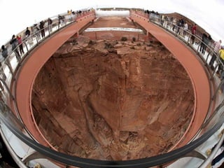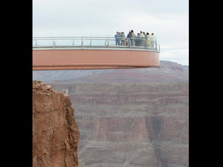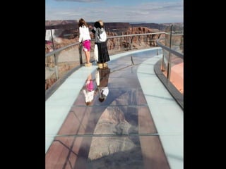 El documento habla sobre el Mirador de Cristal del Gran Cañón del Colorado. En muy pocas palabras, describe una vista panorámica del impresionante Gran Cañón desde una estructura de cristal.