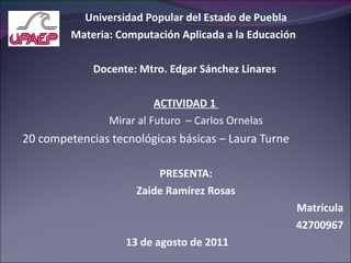 El documento discute los requisitos para los futuros profesionales y docentes. Los futuros profesionales necesitarán identificar y resolver problemas complejos y dominar habilidades como otra lengua, computación básica, matemáticas y estadística. Los docentes necesitarán 20 competencias tecnológicas clave como usar correo electrónico y sistemas operativos. La evaluación de la enseñanza es importante para mejorar los métodos pedagógicos y recompensar a los mejores docentes basados en el aprendizaje de los estudiant