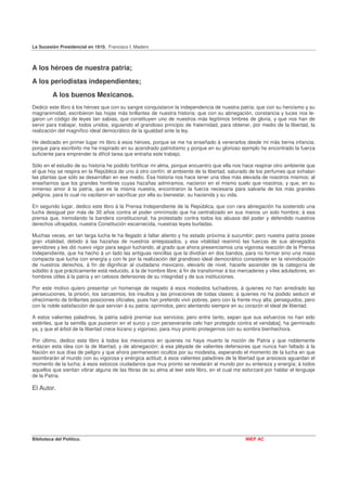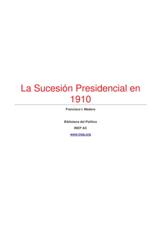 Este documento presenta los motivos que llevaron al autor a escribir este libro sobre la sucesión presidencial de 1910 en México y Francisco I. Madero. Inicialmente, el autor estaba desinteresado en la política, pero comenzó a darse cuenta de que el régimen actual violaba los derechos constitucionales y no permitiría un cambio pacífico. Esto lo llevó a perder la fe en que ocurriera un cambio democrático sin acción. El autor decidió escribir este libro para educar al público y promover un camb