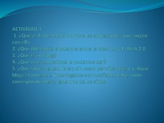 El documento habla sobre las redes sociales y blogs, que permiten compartir información e interactuar entre personas. Los blogs ofrecen muchas posibilidades educativas como estimular a los estudiantes a escribir, intercambiar ideas, trabajar en equipo y diseñar proyectos. El documento también lista algunos sitios web populares para crear blogs.