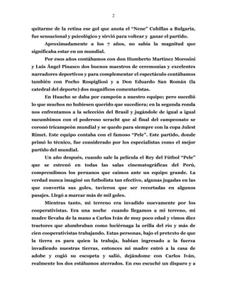 El documento resume varios eventos importantes en la vida del autor durante su juventud en Perú en las décadas de 1970 y 1980, incluyendo el terremoto de 1970, el mundial de fútbol de ese año, la Reforma Agraria, programas de televisión populares, y su educación secundaria.