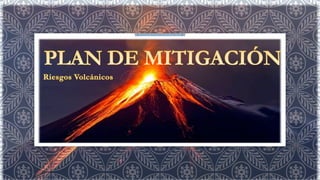 El documento describe los riesgos asociados con la actividad volcánica y medidas de seguridad para mitigarlos. Los volcanes pueden expulsar cenizas, rocas, gases y lava que ponen en peligro a las personas, casas y cultivos. Se recomienda vivir lejos de zonas de riesgo, tener un kit de emergencia, y protegerse de cenizas usando mascarillas y ropa que cubra el cuerpo.