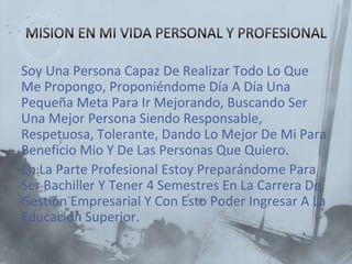 Laura se propone mejorar día a día fijándose metas pequeñas para lograr ser una mejor persona responsable, respetuosa y tolerante. Actualmente se está preparando para graduarse de bachiller y estudiar Gestión Empresarial, y en el futuro le gustaría graduarse de medicina para ayudar a otros. Sus sueños son terminar sus estudios, formar una familia y lograr sus metas a través del esfuerzo para ser feliz.