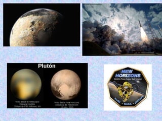 El documento resume varias misiones espaciales históricas. Incluye la misión soviética Lunik 9, que fue la primera en aterrizar con éxito en la Luna en 1966. También describe las primeras misiones tripuladas del programa Apolo de la NASA a la Luna entre 1969 y 1972. Otras misiones mencionadas son los rovers Opportunity y Spirit en Marte, las sondas Viking 1 y 2 también en Marte, y la misión New Horizons a Plutón en 2015.