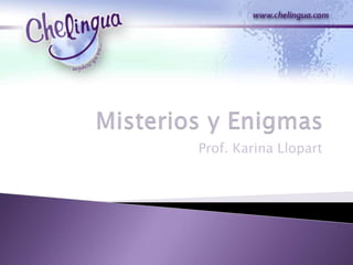 El documento presenta varias hipótesis sobre misteriosos lugares y fenómenos, y pide al lector que identifique a qué misterio se refiere cada hipótesis utilizando indicativo o subjuntivo. También incluye imágenes de dos misterios sin identificar y pregunta qué se sabe sobre ellos. Finalmente, da ejemplos de diálogos que utilizan diferentes formas de plantear hipótesis sobre el presente y pasado.