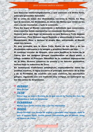2) Según Homero, al principio existían Océano y Tetis, de cuya unión nacieron la Tierra, los ríos y las oceánidas.