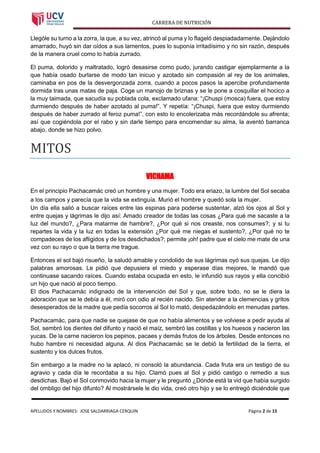 Este documento contiene tres relatos de la mitología inca: