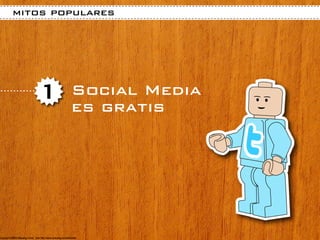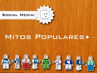 El documento aborda varios mitos populares sobre el mercadeo en redes sociales, incluyendo la creencia de que es gratis, fácil y solo para adolescentes. Además, se desmitifica la idea de que el mercadeo en redes sociales reemplaza el mercadeo tradicional y que los resultados son inmediatos. Se resalta que el enfoque en redes sociales no es únicamente poner anuncios, sino una estrategia más amplia.